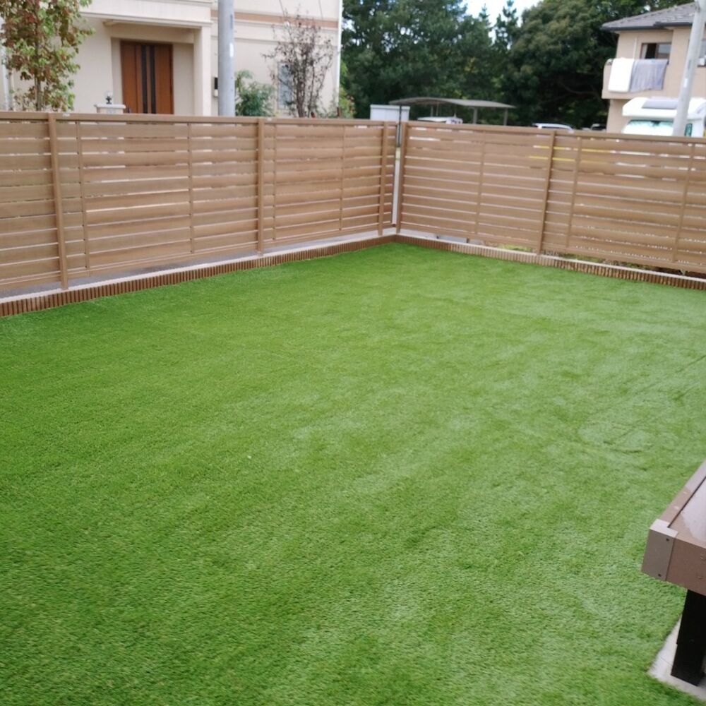 千葉県船橋市 路盤整地工、防草シート敷、人工芝敷設(ワイズターフV30)